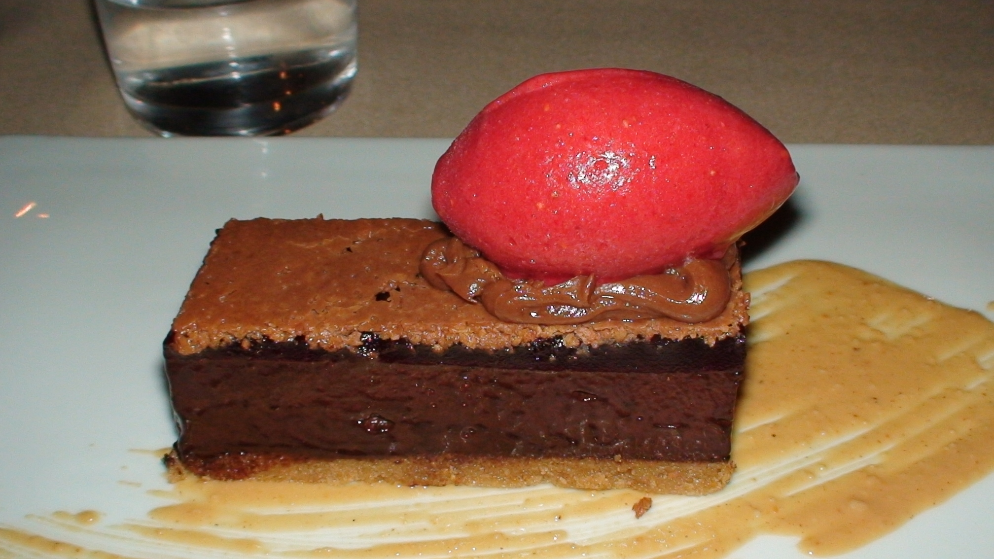 We had a wonderful meal highlighted by Fuel’s signature fried duck dish that had Carl in utter alimentary ecstasy from the first bite of his portion to the last bite of Martin’s. We also enjoyed Chef Belcham’s version of English pea soup, heirloom tomatoes with Carnaroli Risotto, three types of gnocchi (including my favorite served with green beans and bacon), a foie-gras stuffed squab for Martin and I, and three different desserts which included something called a peanut butter and jelly (pictured above). Forget getting me on as a guest judge – I’m lobbying to land Chef Belcham a gig as one of the challengers on Iron Chef America. And the secret ingredient is…pork belly! Imagine them trying to make a dessert out of that!