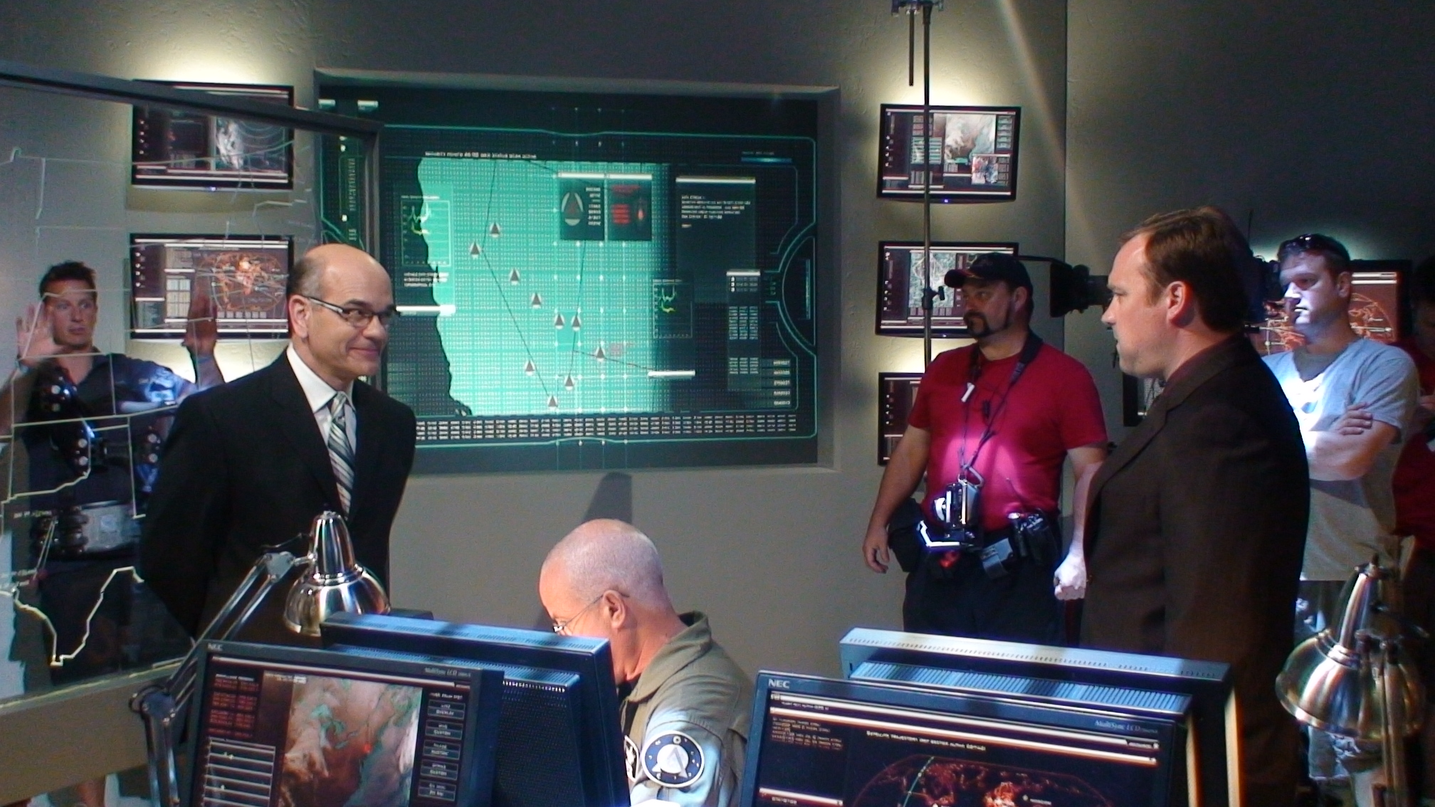Otherwise, a fairly quiet day. I watched some dailies (shoot-out, shirtless wraith, and ginormous explosion), approved some promos, and swung by set to say hi to Rob who was directing Bob, David, David, and Gary down in the command center on Stage 5. Alas, it looked to be a late night for Bob so we didn’t get around to doing our Q&A video segment but fear not. We’ll definitely get around to it next week.