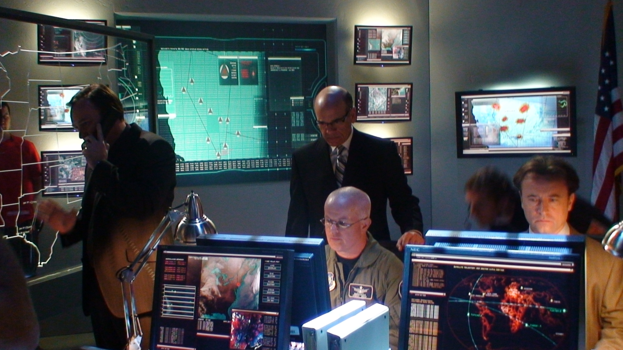 Thanks for the pics of the Command Center, Joe. The triangles and smeared blips on the maps are in some very familiar places and I was quite surprised to see the one that looks to be in Herlong, CA. That one is almost always left off of the maps in movies and TV series, though I was also surprised to see that the one just outside of Lompoc, CA was missing. Who put the maps together? Were they told which locations to put on the maps, or is it just one of those things meant to be in the background and up to their discretion? Am I being entirely too nosey and asking too spoilery questions?