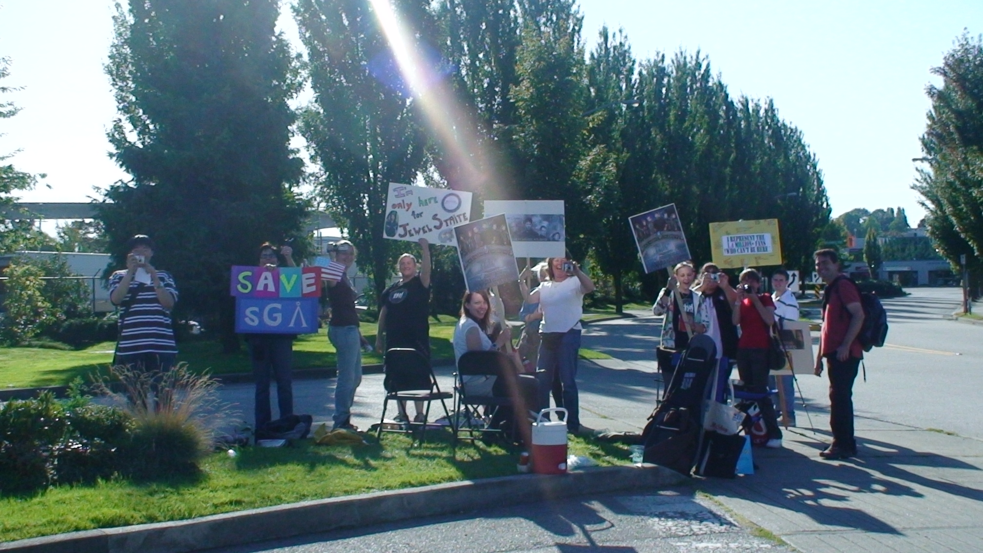 Also: one of the “Save SGA” protesters seems to have a guitar! Did you happen to catch what they were singing???