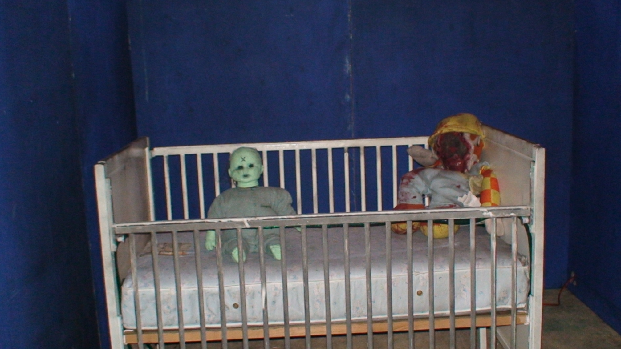The line-up at the next haunted house tour was twice as long, the wait even more so. As we inched our way along, some mischievously grinning fellow clutching a bloody knife ambled out of the attraction and off. I assumed he was part of the show. Once we finally reached the front, we were again cautioned not to swear or strike the employees. I assumed they’d been on the receiving end of many an angry patron (“What’s your problem scaring me like that?!! You want to give me a freakin‘ heart attack?!!). This one was a little more inspired with costumed participants popping out of alcoves, jumping out of hiding, and generally harassing my screaming wife. Good times.