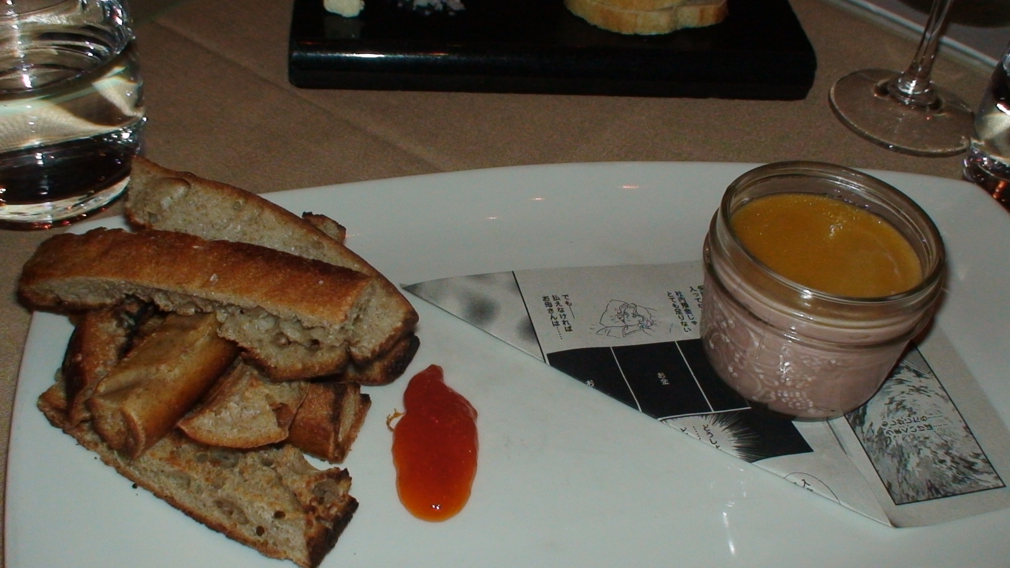 We kicked things off with an amuse: Potted Pork and Foie Gras Rilette served with rye bread and an apricot jam. A wonderfully rustic, hearty starter.