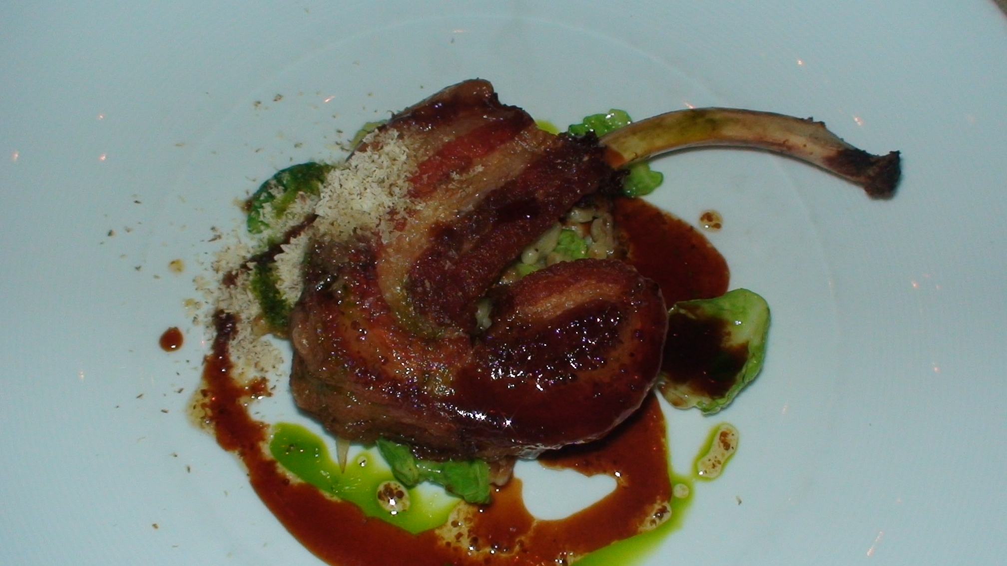 The dinner sounds pretty good — I love pork (and port). But the risotto looks a bit unappetizing spread out on the plate like that. 🙁