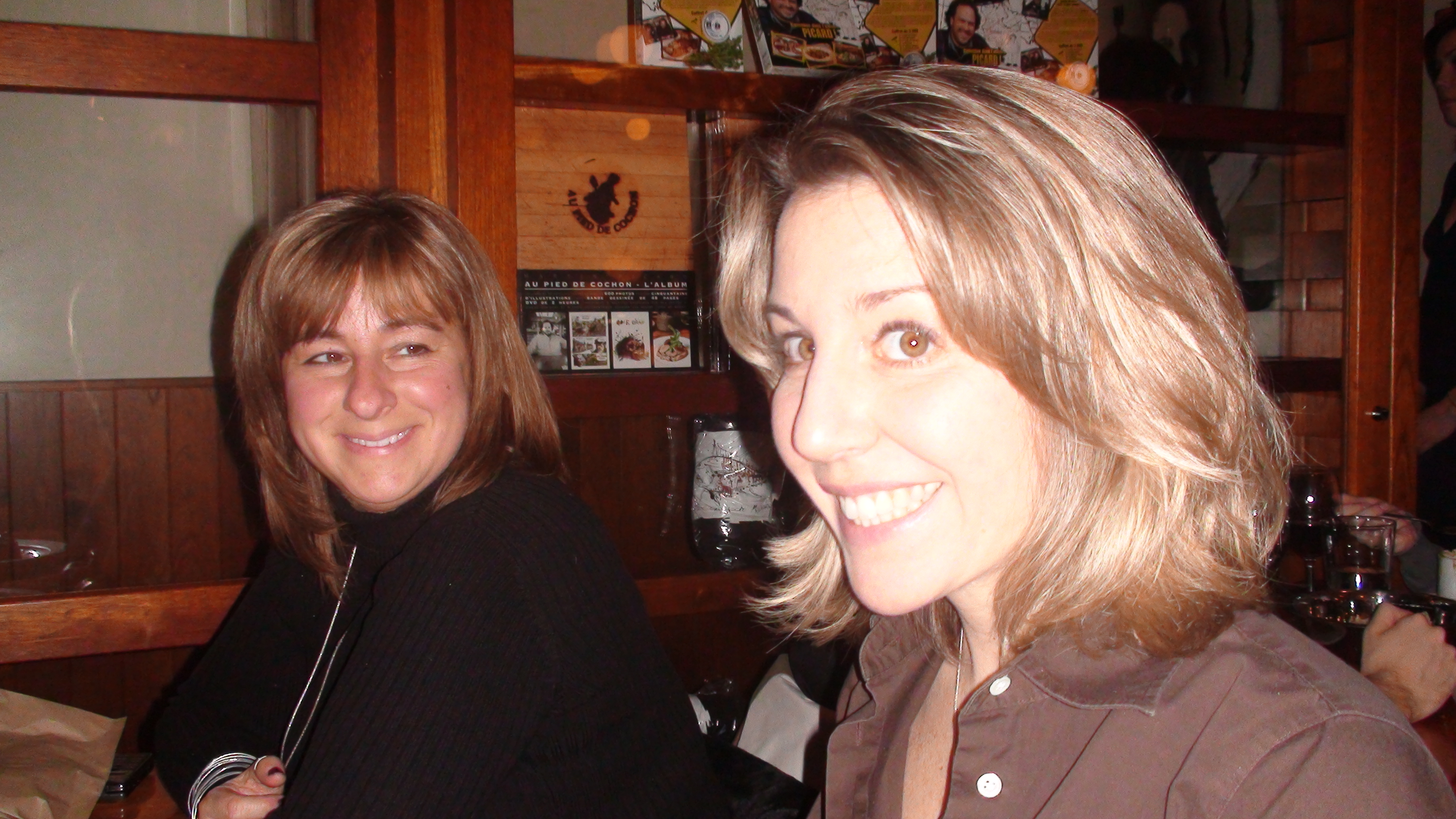 Anyway, we got together – along with his lovely girlfriend Melanie, my sister Andria, and her friend Lili – for dinner. The place: Au Pied de Cochon, my favorite Montreal restaurant, known for its rustic charm and equally rustic dishes. If you want to sample traditional Quebec cuisine in all of its hardy, countrified glory, then look no further. Menu items included confit lamb shanks, venison liver, bison tartare, and endless foie gras. If you’re planning to go, make reservations well ahead of time. My sister was able to book us a table – but for a 5:00 p.m. sitting. Lawrence suggested that would give us time for a late dinner, say around 9:00 p.m.