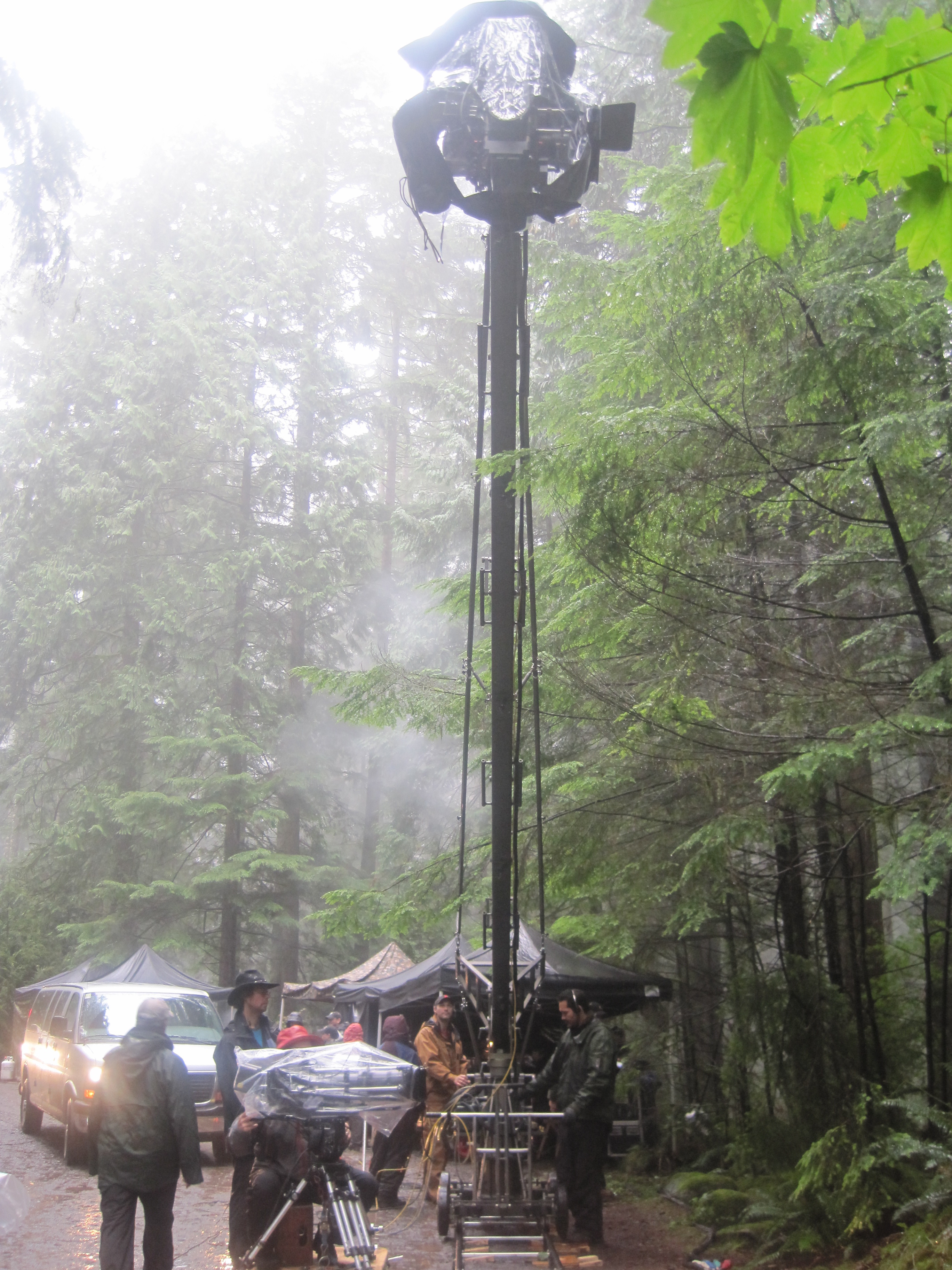 Yesterday was our last day (and night) in the wilds of North Vancouver where we finished shooting our location exteriors for The Hunt. While it’s nice to get away from our standing sets every once in a while, it’s even nicer to get back to those standing sets after spending a few cold and rainy evenings in the great outdoors. If you were there, you’ll know what I’m talking about. If you weren’t, check out the pics…