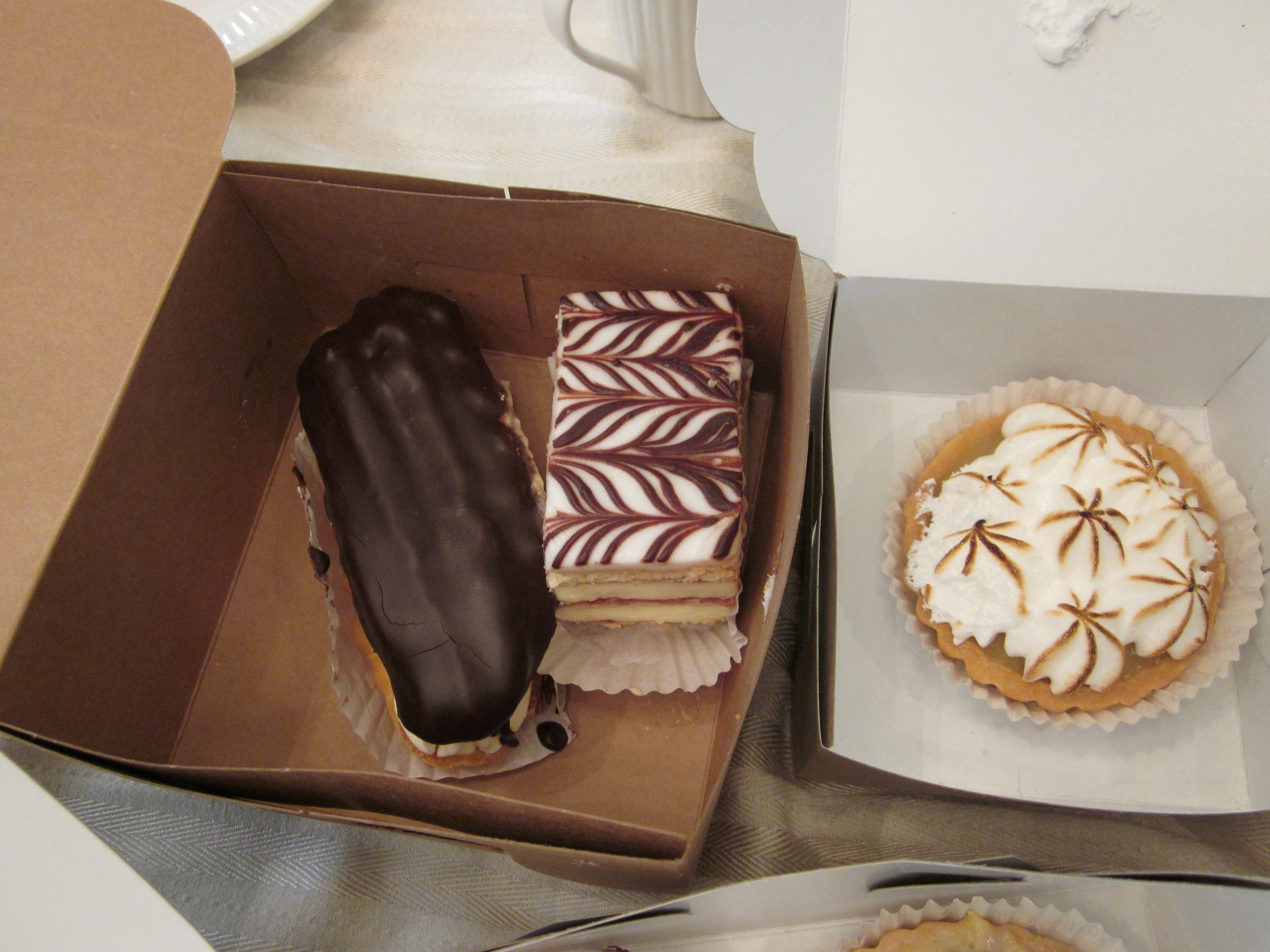 I didn’t have time to make ice cream, so I picked up some desserts from that always-busy cake and pastry place in the Granville Island Market. I counted on two pastries each, ten in all, but decided to go for an even dozen. Somehow, I ended up with an extra.