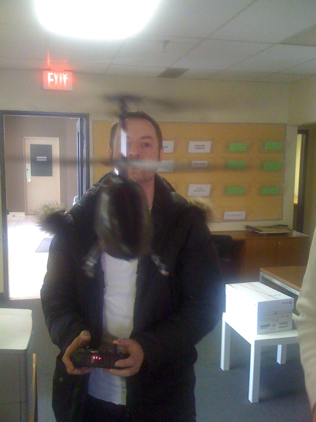 RE: the remote control helicopter… it’d be pretty cool with a video camera attached to it. Fly it around the office like that, though gotta have a screen to watch the video while flying the helicopter around of course. heheh