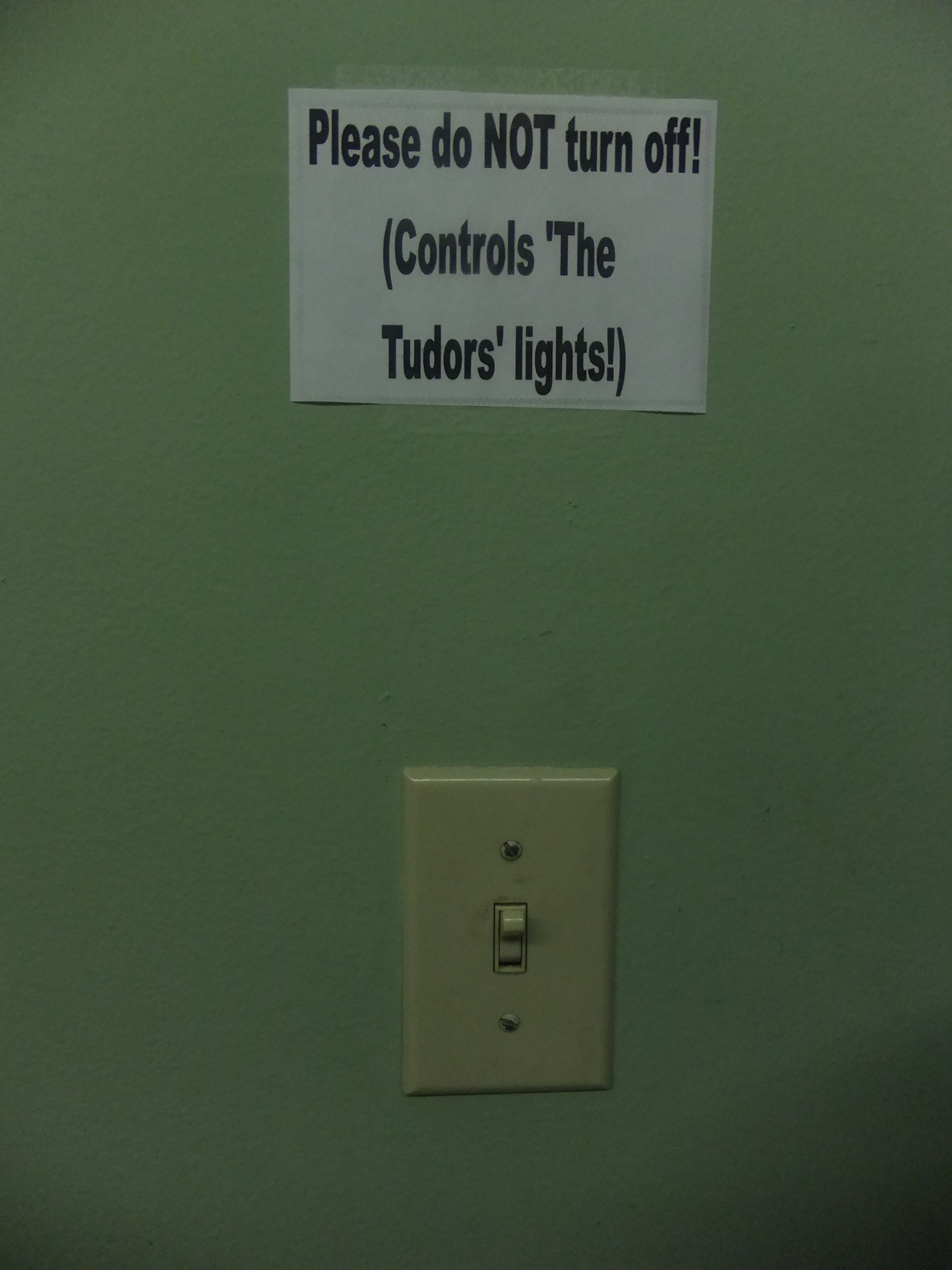 And I would totally put up a sign like that “Tudors’ Lights” sign if I ever planned to work in an office again.