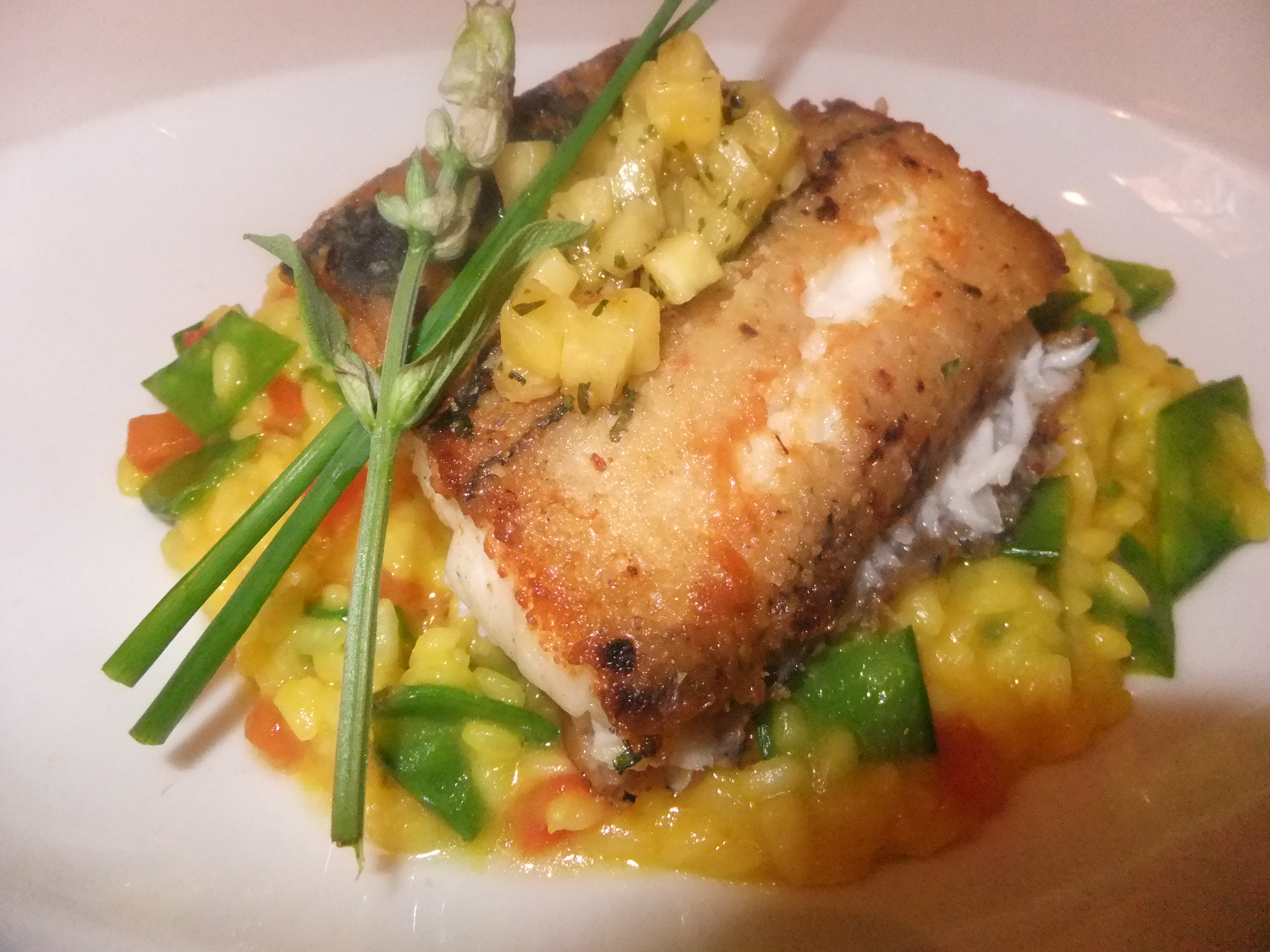 Akemi went with a fish she instantly recognized from back home. The Japanese call it Tachiuo (I believe it’s known as Black Scabbard or beltfish here) and prepare it a variety of ways although I hear that aburi-style and grilled are the most popular. Chiado’s version was lightly dusted with flour before preparation, then served on a bed of saffron risotto. It was unbelievably good.