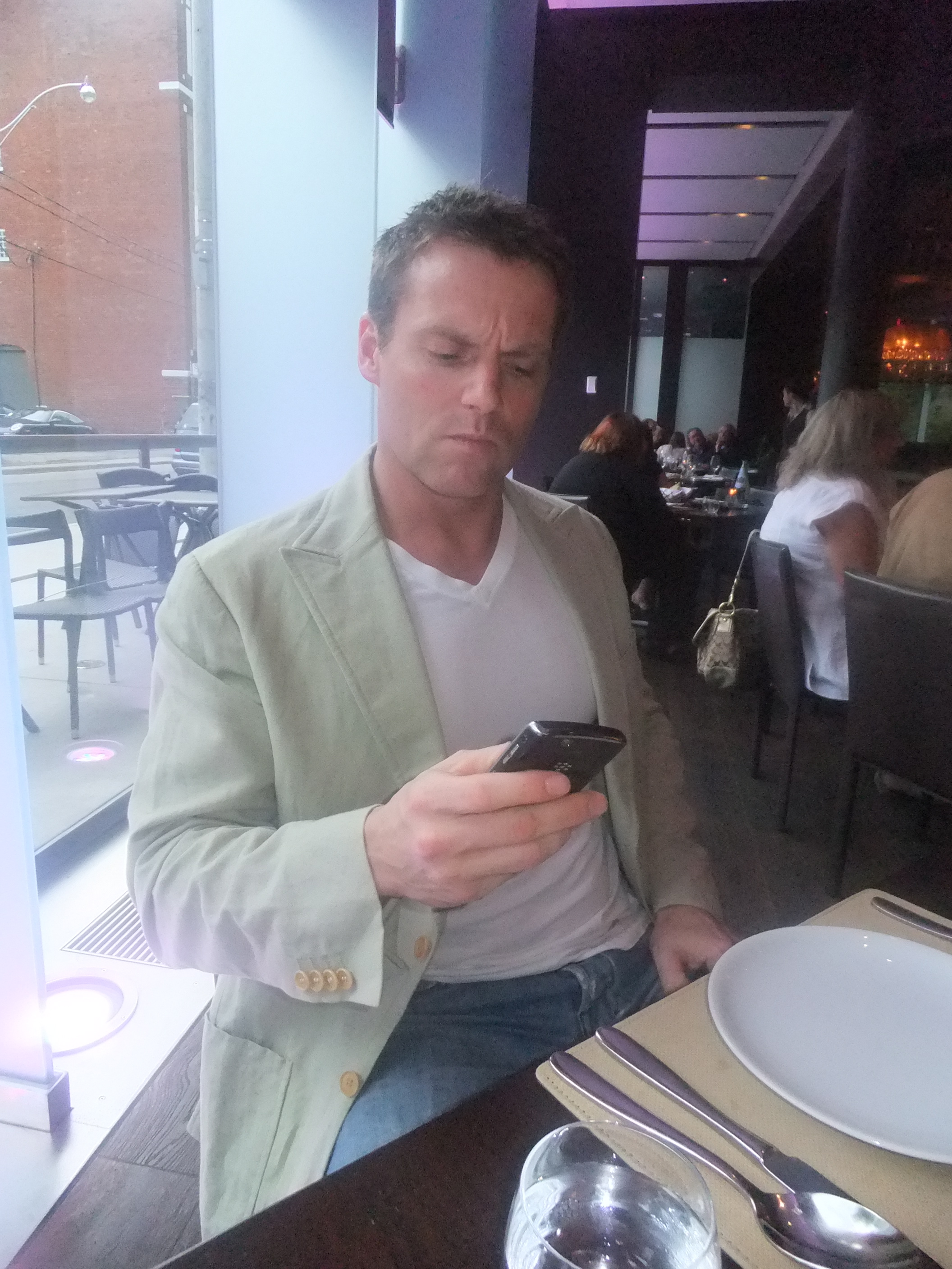 Hey, look who it is! It’s Michael Shanks (Stargate’s Dr. Daniel Jackson, Smallville’s Hawkman) who’s in town shooting Saving Hope with Erica Durance (Smallville’s Lois Lane). Michael texted me last week to let me know he’d be in Toronto and that I should set aside a night for catching up. He suggested drinks, I countered with dinner, and we ended up covering both. He left it up to me to choose the restaurant and, after much consideration over countless choices, I ended up going with my go-to place: Scarpetta. There we enjoyed a great meal and an even better conversation, three and a half hours spent talking about past and future projects, life on the home front and, of course, Stargate. About the only topic we didn’t cover was the Vancouver Canucks. I figured it was too soon.