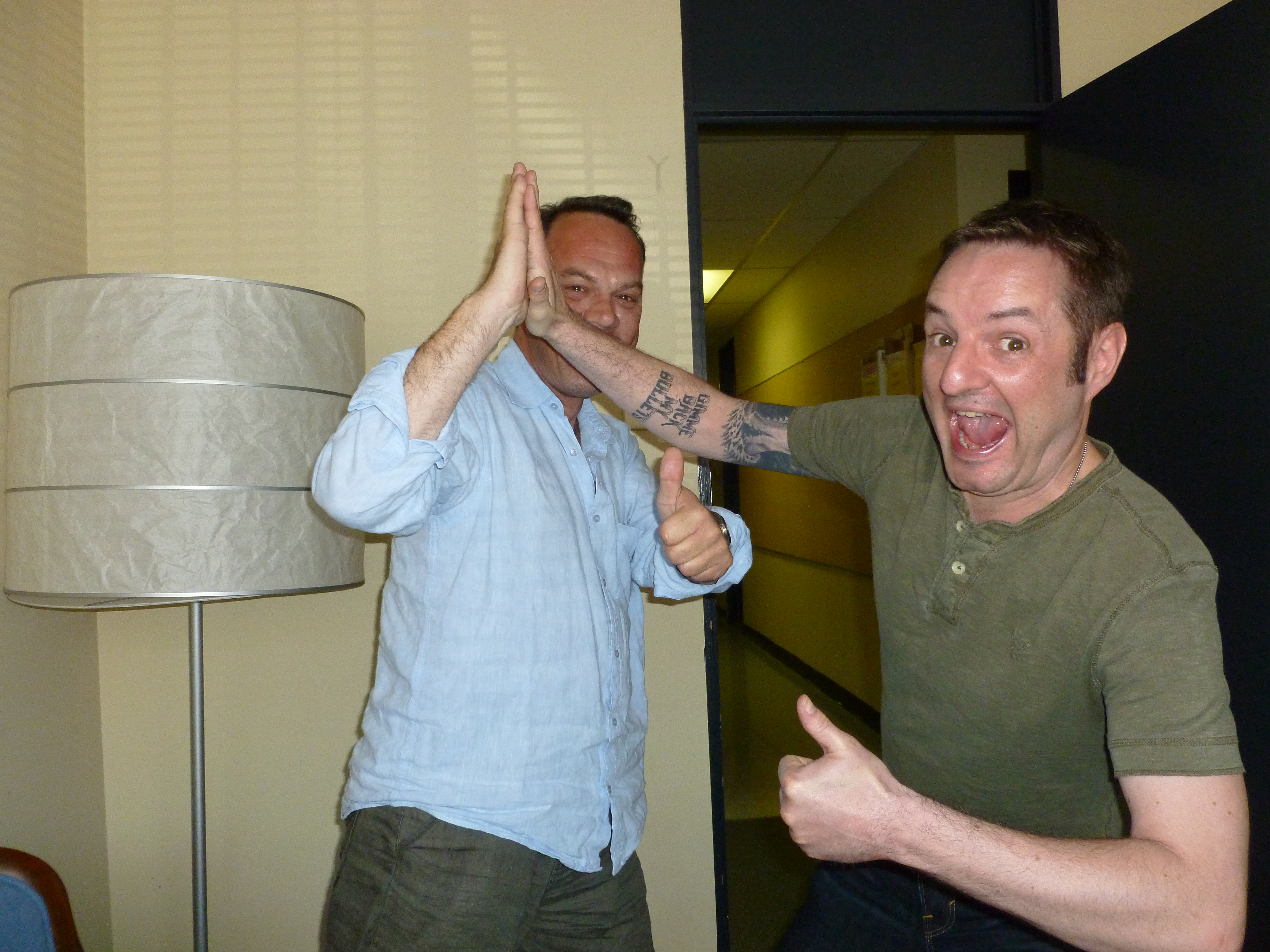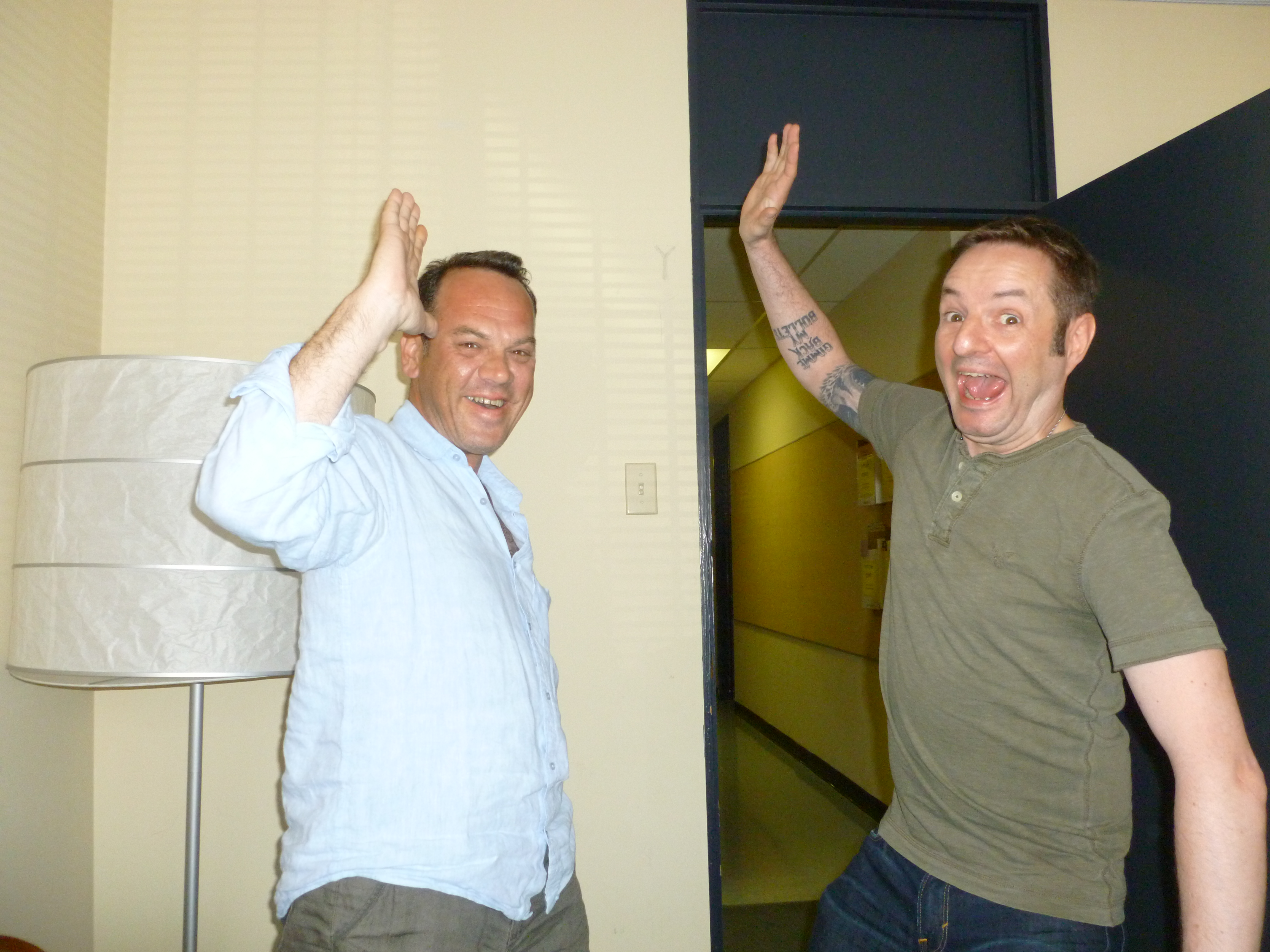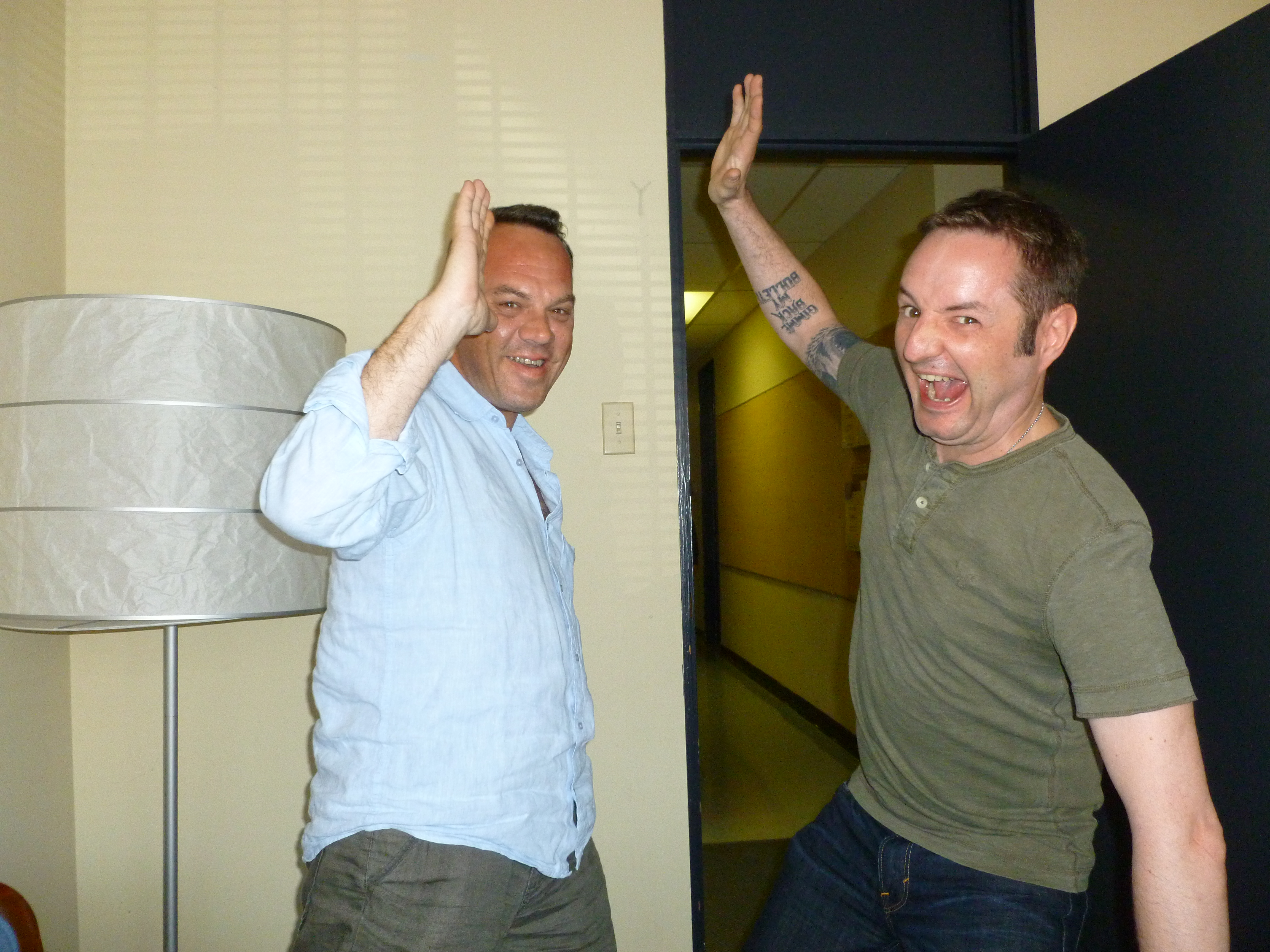 Speaking of happy co-workers, check out Steve and Alexander celebrating the completion of the episode 10 spin session…