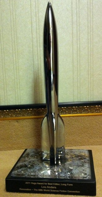 The Hugo is one of the most beautifully designed awards imho – I have seen one up close as my friend Sue has been a recipient in the past. They are simply stunning. Congrats to Mr Anders on his win.