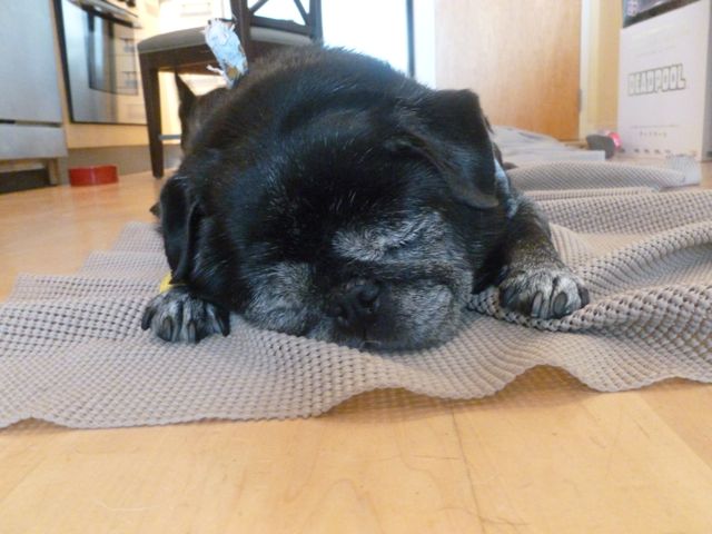 Jelly’s position on the pillow looks terrific for easing pressure on the hips. Jelly needs to finish her book on doggy yoga.