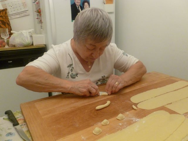 Wow, what a terrific blog. It’s just as good as Christmas: food, beautiful family (and family-to-be?), and furry friends. Making the traditional foods is a celebration in itself, and your mom looks great! The photos of pasta-making, and everyone else, are treasures. Akemi looks adorable, and fits right in. She’s family already. Do you tag your family blogs as “family?” Will have to revisit this one when I need an antidote for a blue day. Joe, you are rich with family and friends. Wish you could get home to Montreal more often! 🙂