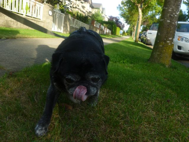 The dogs seem to be equally happy to be back in familiar surroundings. Maximus has resumed eating again and seemed downright lively today during his afternoon walk. Some pics of the two oldsters…