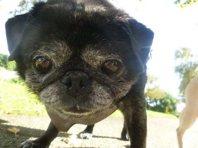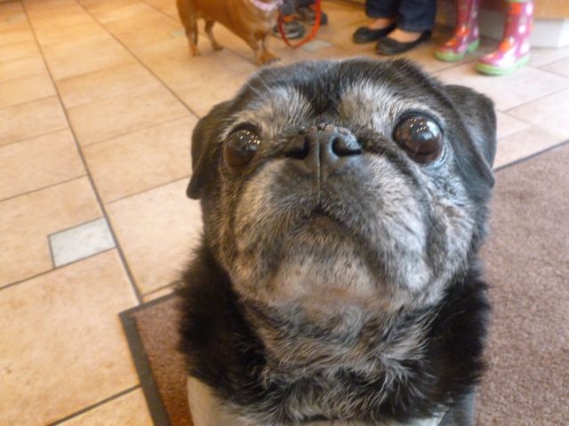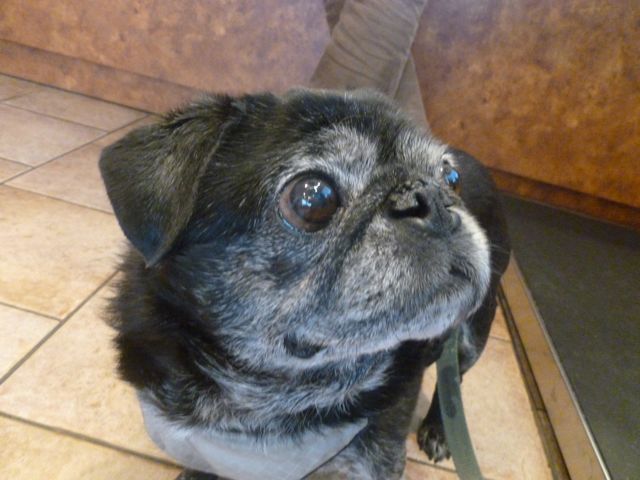 So, here is a photo of a pug, wearing shoes that look like pugs.