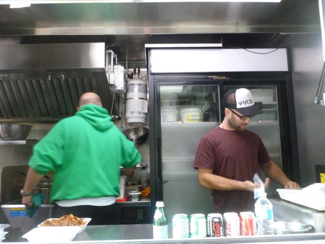The boys at work.The food truck is atypical in that it has an open-air dining area for six in the back.