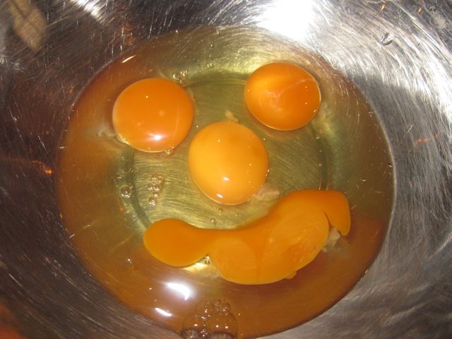 I swear, these yolks were NOT doctored or otherwise manipulated. So what does this mean? Is it a sign? What is Egg Yolk Face trying to tell me?!!