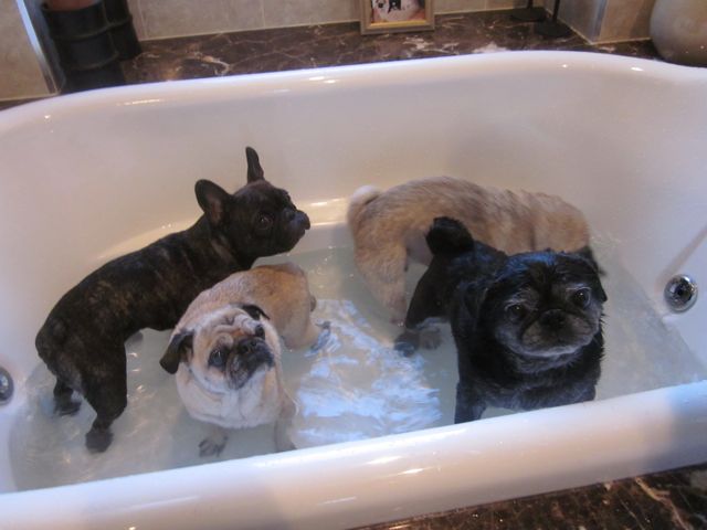 Pugs in a tub, pugs in a tub! Seems impossible that they can get cuter then they go an take the cutest bath ever.