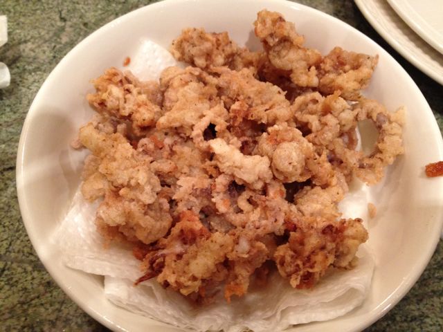 It’s crispy calamari for me, an amateur in the weird food department. It’s de-rish, though. Yum.