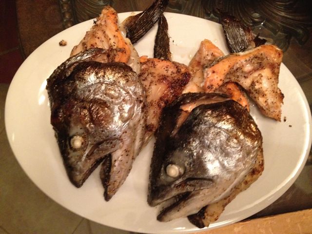 Recipe: Rinse your fish heads and pat dry. Mix some sesame oil, black pepper, garlic powder, and salt in a bowl, then slather over the fish heads, making sure to cover inside and out. Pop into the oven and broil for 10-15 minutes. Great with rice. Very Japanese!