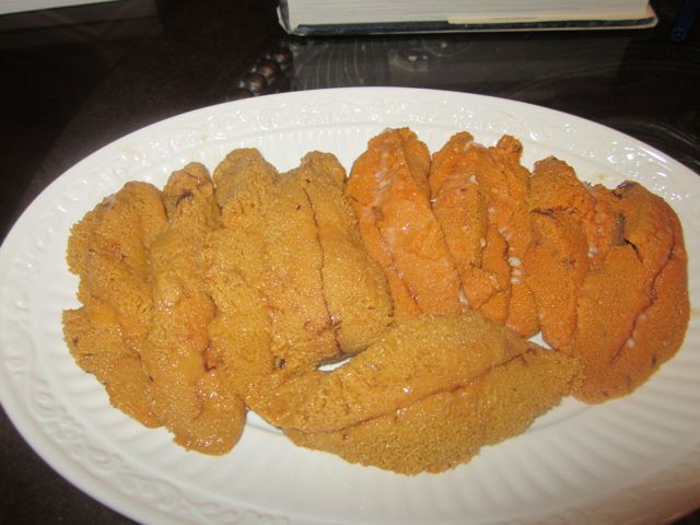 I’ve had hamachi collars at my local Japanese restaurant and was not wowed. Maybe I need to hold out for the cheeks. And maybe they have them at YOUR fish purveyor, but I’m not so sure I can get them here. Uni? Yum. Did you scoop them yourself?