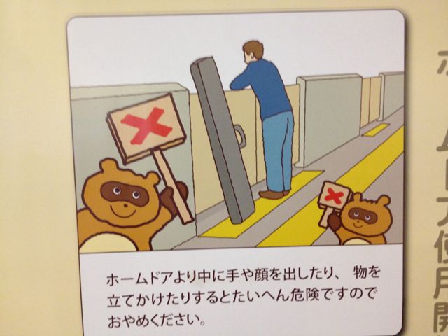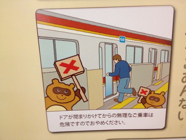 We ended up running out of time as we had to be in Roppongi to meet a friend of Akemi’s for dinner, so we hopped on the metro and caught the Hibiya line to Midtown. Inside the station, I snapped pics of some of the subway warnings. Check out the smart Japanese raccoons schooling the dumb foreigner…