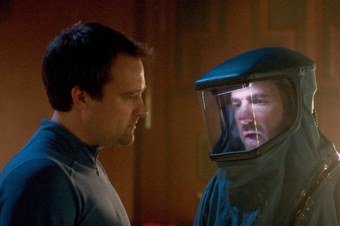 Again, what really stands out for me in this episode is less the threat faced than the reactions of our heroes – specifically, John Sheppard. In the opening two-parter, it is suggested that he’s a bit of a rebel, a loose cannon who has problems with authority. In later episodes he shows great courage and determination in the face of danger and yet, at the same time, also demonstrates a frustratingly cavalier attitude toward his commander, Weir. In Underground, he goes over her head by making defacto deals with the Genii. And in this episode, he openly challenges her authority by ordering Sgt. Bates to disregard her orders. Ultimately, Sheppard gets his way and his actions end up making an already bad situation worse when his intervention allows the nano virus to spread to the mess hall and endanger the lives of everyone there. In the end, he puts HIS life on the line and his heroic actions save the day, but he is surprisingly unrepentant in his post-plague discussion with Weir.