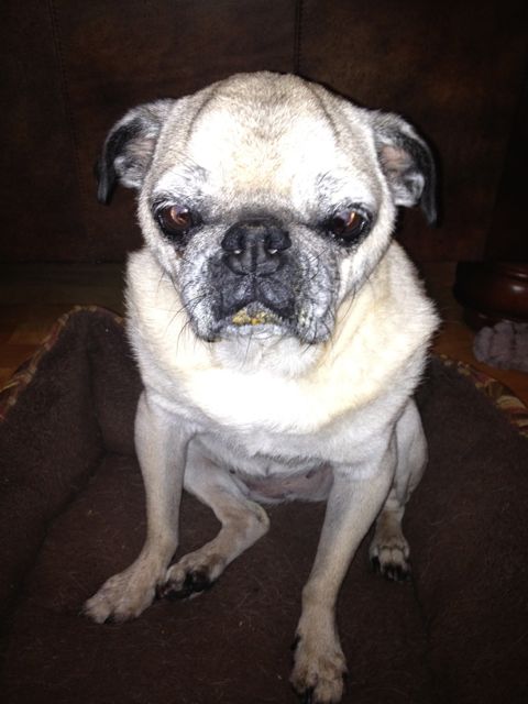 Jelly is so bummed she didn’t even bother wiping the pumpkin off her face for this picture.Bubba’s “Uh, where do you think YOU’RE going?” look.And Lulu’s “take me with you!” gaze.