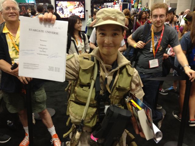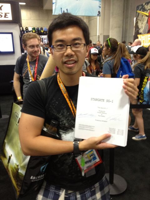 Great to finally meet you after reading your blog for so long! Thanks so much for the signed Dark Matter #1 and the annotated SG:U script (which I haven’t read yet but will soon, promise!). Hope Con didn’t leave you too exhausted, although if your next blog entry is any indicator, you’ve recovered pretty quickly. (I’m still sore from wearing that desert offworld outfit for two days, and my feet still haven’t forgiven me.)