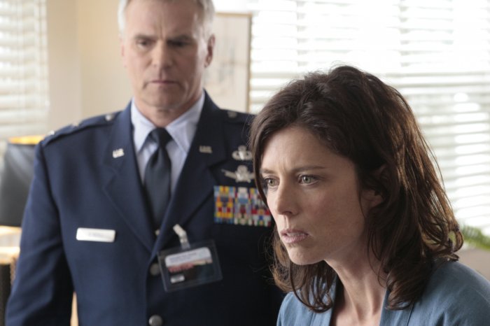 Paul and I are big Carl Binder fans for purely selfish reasons. He writes solid first drafts and is able to incorporate notes quickly with a minimum of hand wringing and tearful reproaches. He is a show runner’s dream writer, as reliable as a Mustang convertible in his ability to deliver the goods in impressive yet understated fashion, relieving us of the necessity of doing any of our own driving – or, alternately, stripping him for parts and abandoning his gutted chassis in some sketchy neighborhood. Well, you know what I mean. He’s great, especially when it comes to character-driven stories. So it should come as no surprise that Carl was the go-to guy when it came to the Elizabeth Weir episodes. Before I Sleep was his memorable first writerly foray into Stargate: Atlantis and, two seasons later, he’s lost none of the skill, inventiveness, and humor that landed him a staff position on the franchise. The Real World is a head-spinner of an episode that takes place in two different realities – one real, one imagined, and yet for all of its illusory setting and fictitious elements, the alternate world offers up the opportunity to see a side of Elizabeth we, as viewers, rarely get the chance to glimpse.