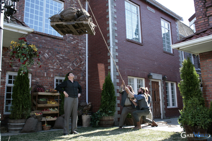 In the showdown between Sheppard and Kolya, the two face-off – and the rest of the Atlantis gang is standing right behind Sheppard. I found it odd that anyone would stand directly behind someone in a potential shoot-out, but the cast was adamant that their characters would “back Sheppard” up. While I appreciated the sentiment, I would have argued that, in this particular instant, one would back someone up without, literally, standing behind them.