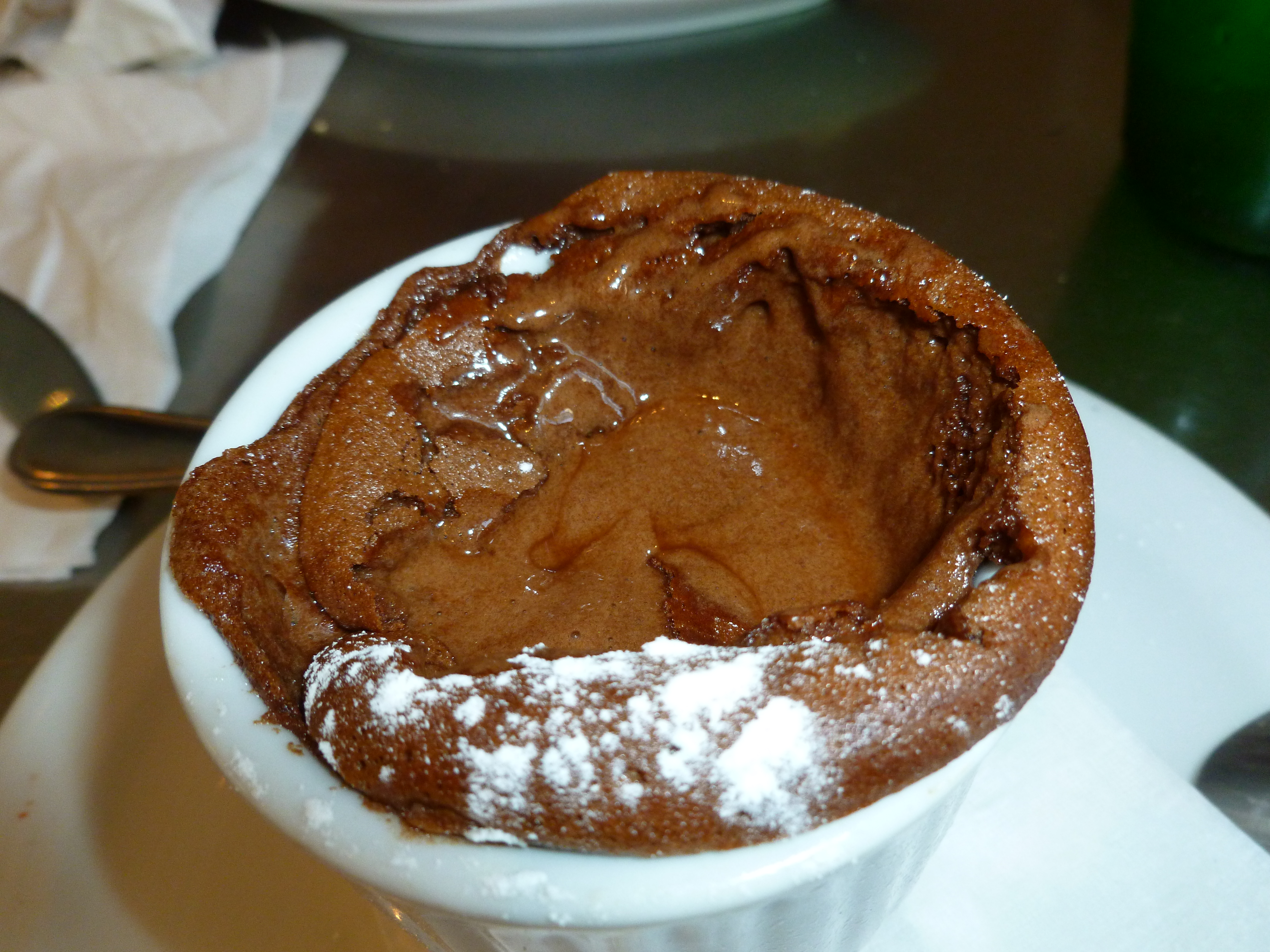 I always order the chocolate soufflé if I see it on the menu (which is not very often!) and I usually always order the chocolate lava cake as well. They are not the same thing though!!!!! I make a pretty good version of both myself. The chocolate lava cake is one of the easiest deserts to make so I’m always shocked when they turn up on some posh restaurant’s menu and they charge big bucks for them! Can’t resist ordering it though. 🙂
