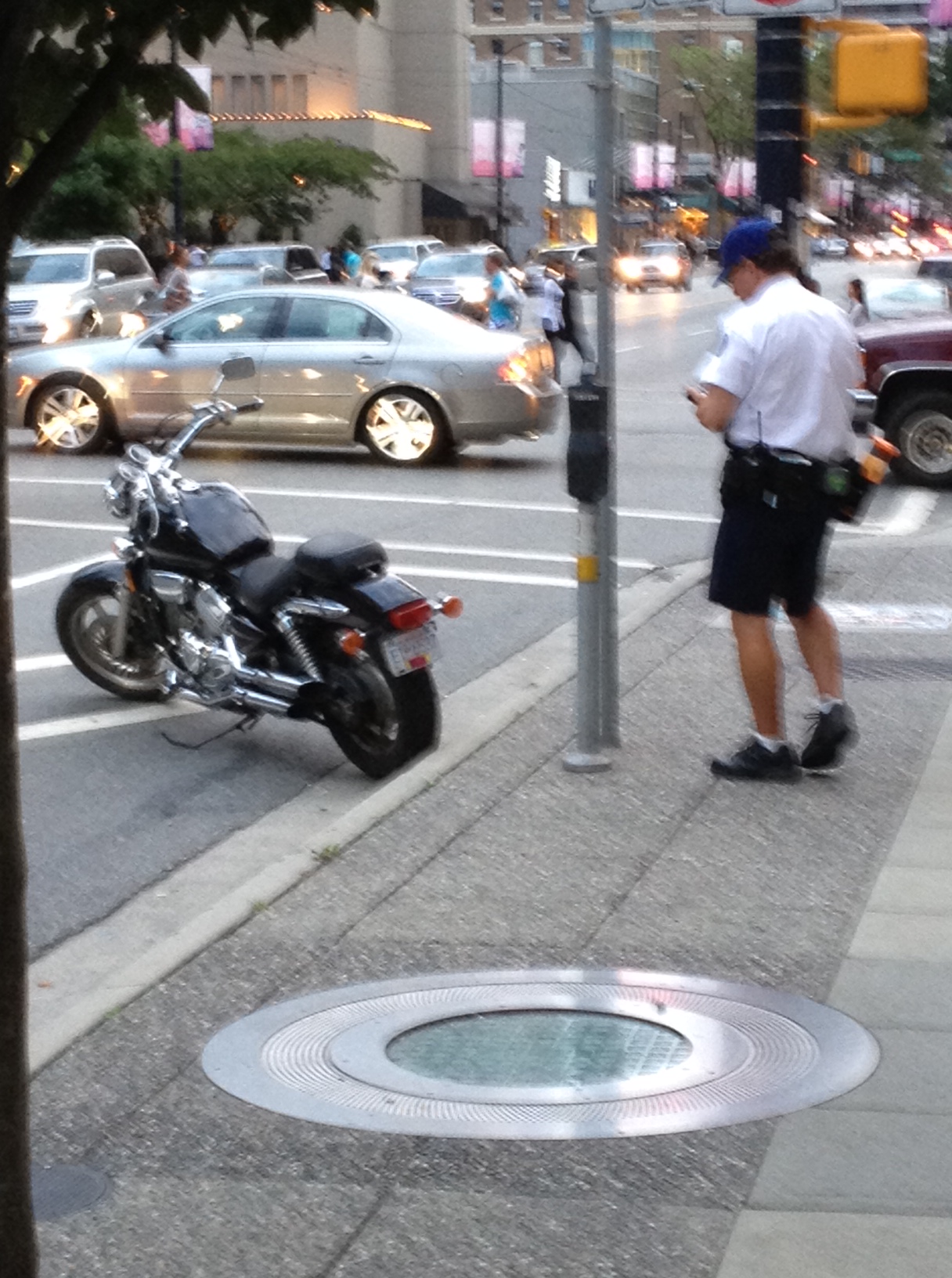 The offending motorcycle being ticketed. In retrospect, not running it over was the right choice.