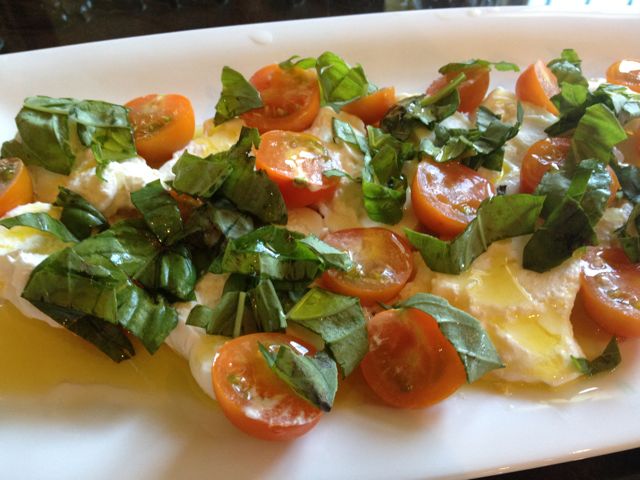 Sometimes, simple is best. Like this simple salad comprised of sweet sungolds, fresh basil, burrata cheese, Arbequina olive oil, and sea salt.