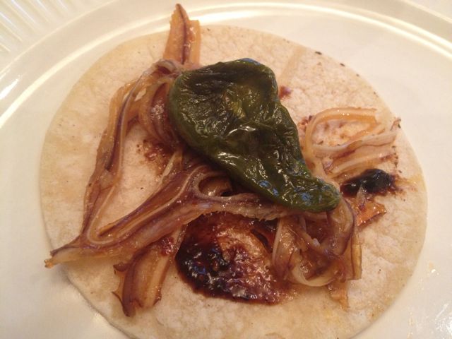 Sadly, no duck hearts to be found. Undaunted, I decided to improvise, picked up some available ingredients and returned home where I combined them with a few pantry items to make a magnificent meal: Chicken Heart Tacos!