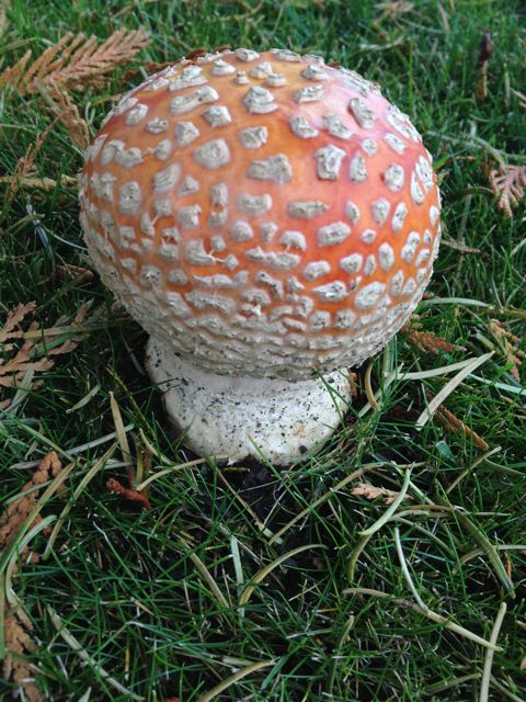 In the last year, I have seen an astonishing number of mushrooms popping up around the area, in particular in one neighbor’s yard. I’ve been tempted to get a mushroom guide, because I’m convinced at least some of them are edible. however, sanity for the moment has prevailed, and said mushrooms have been left to go where mushrooms in nature go; kicked and stomped on by people who seem to go berserk at the sight of a stray fungus.