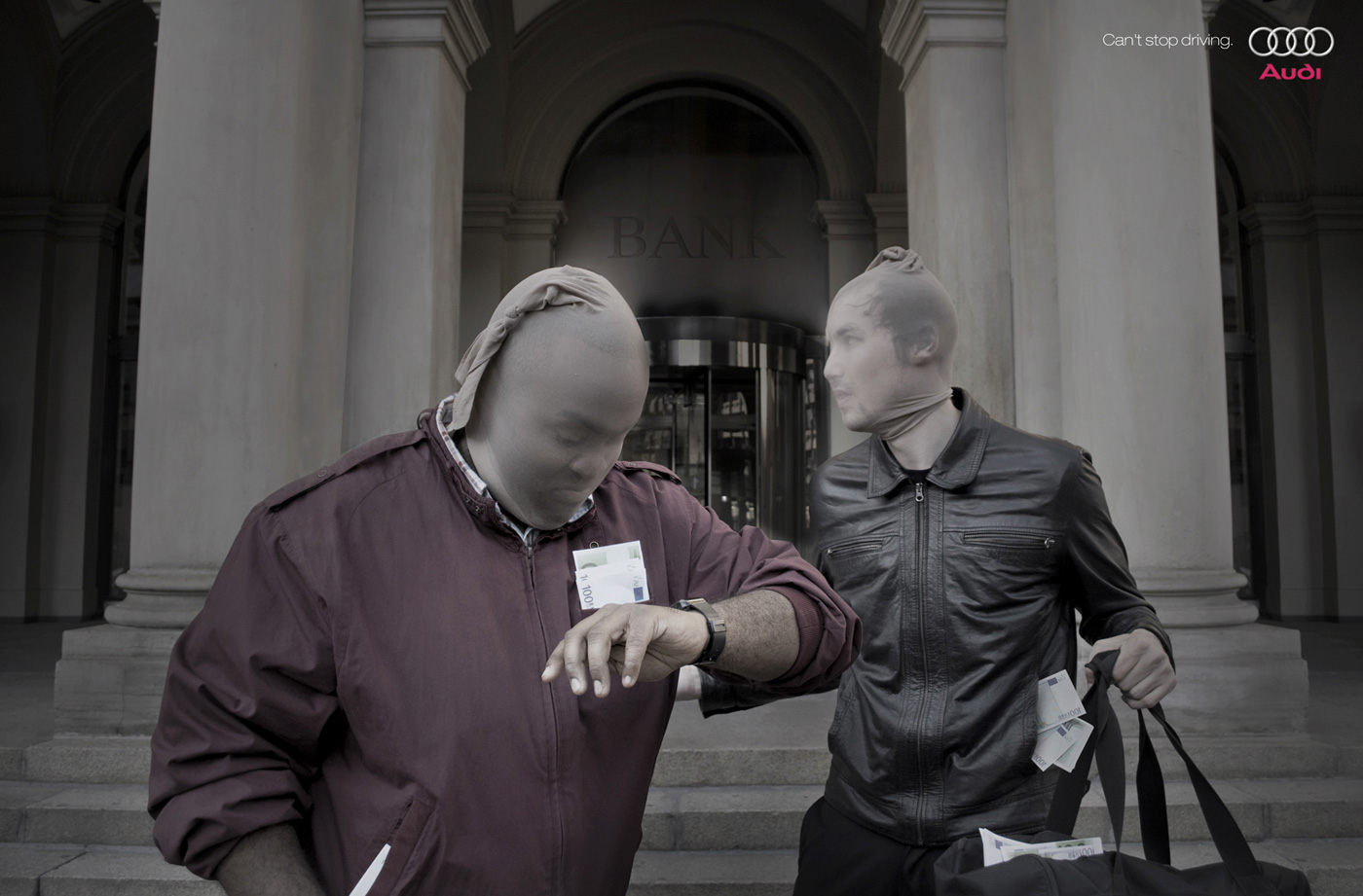 The Audi ad might be better in a TV commercial instead of a print ad. Seeing an Audi actually drive by as they’re waiting for it might be better visually. Bad Dog Breath is my favorite. 🙂