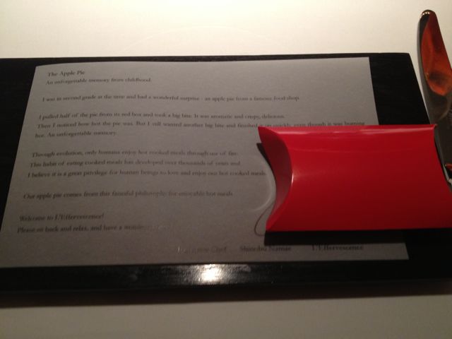 Next up was the apple pie which – hey, check it out! – looks a lot like the hot apple pie I used to get at McDonalds when I was a kid. Chef Namae’s version is made with braised beef cheeks and Japanese sweet potato. And, yes, kind of tasted like apple pie.