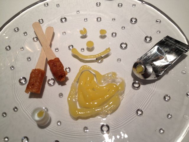 We ended our meal with various small sweet bites, among them some pop rock chocolate pops –