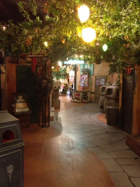 We worked off gyoza and ice cream by taking a walk through Namco Namja Town’s meandering corridors, bizarre open courtyards, recessed alcoves, and dead-ends…