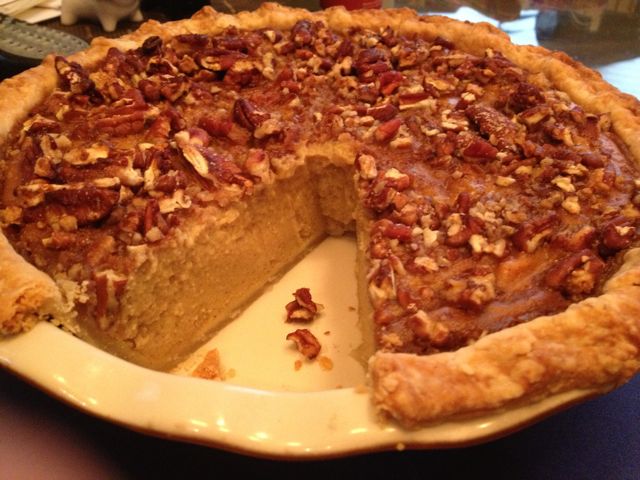 In keeping with the Thanksgiving theme, Rob baked a sweet potato pie. We served it up with our main course: