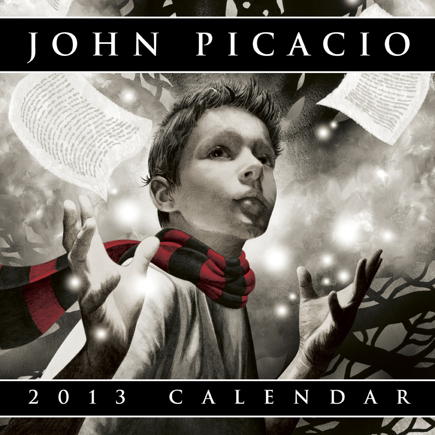 “This full-color 12” x 12” 2013 wall calendar collects twelve of my favorite book cover artworks from my career thus far. This is the debut product from my new company, Lone Boy, and I want the final product to be the best I can possibly give you. The calendar’s cover will be printed on 12 pt. premium paper stock, with a satin aqueous-coated finish, and the interior pages will be printed on 100# text.