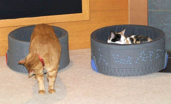 And for the cat who has everything, how about a Stargate-themed cat bed:
