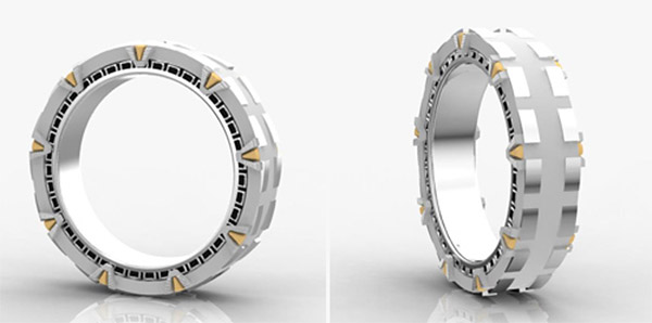 The gate’s structure is 14k gold while the chevrons are 18k gold. And, best of all, the inner ring actually spins!
