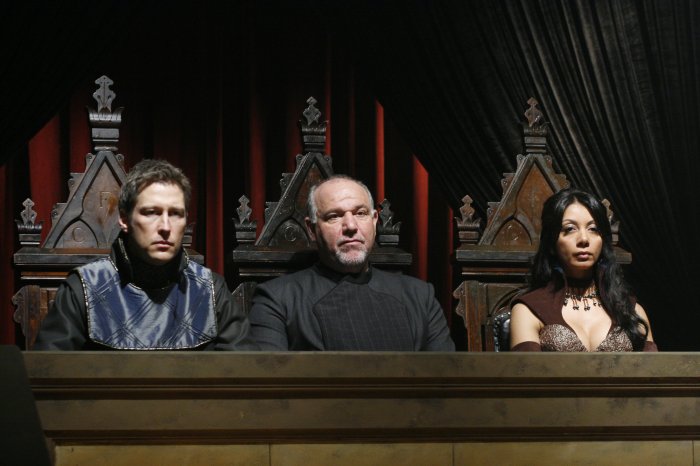I love flashback shows, especially comedies. Inquisition was good. But how come you and Paul didn’t have any “Excerpts Written by”? I guess you writers thought maybe the Atlantis team might have been guilty of some crimes, so you decided to state your case to the fans? Seems like it ended up 50/50. I think I have been watching too much American Idol because that council reminded me of the panel on Idol. You had the old successful record producer, the country singer, and the pop star diva judges. I expected Sheppard to break out in song at any moment. But Woolsey would make a great lawyer!