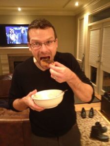I just want to say that Alex really sells the “guy scarfing doughnuts”.