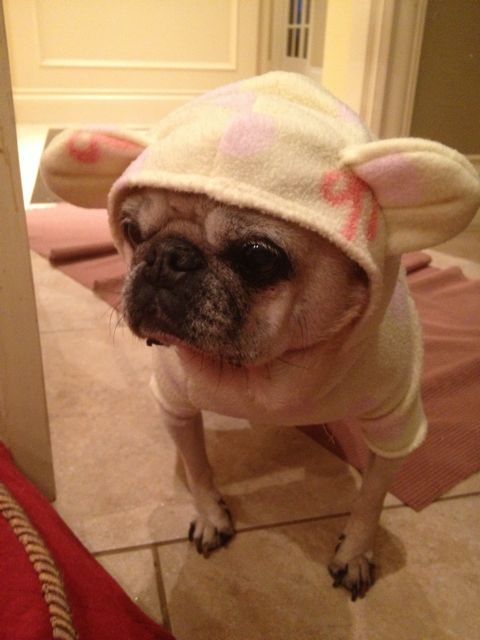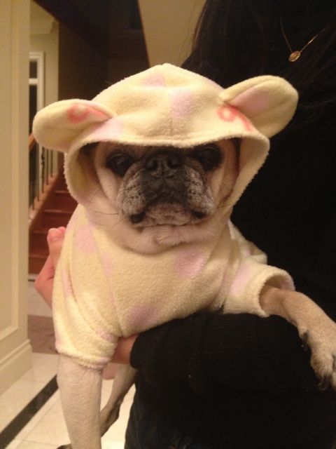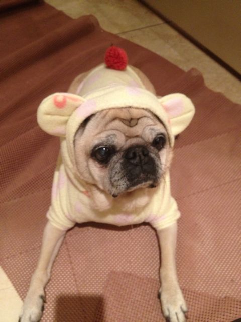 I assume Akemi is aware that dogs already have ears? Isn’t putting eared clothing on them a little bit superfluous? Yes, he is cute though. Who could resist?
