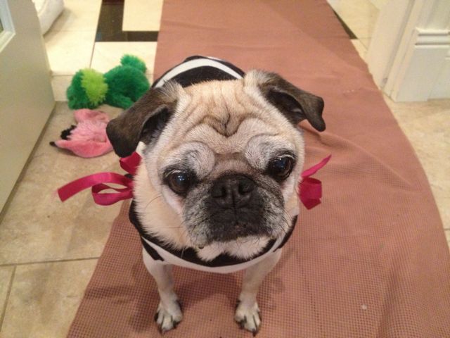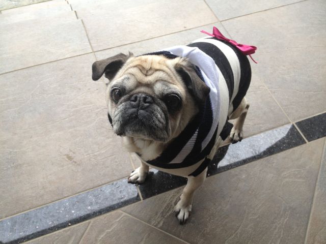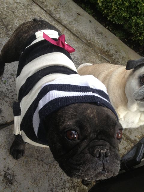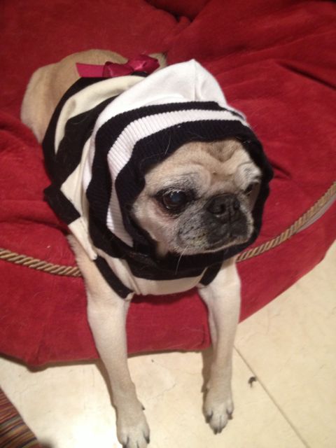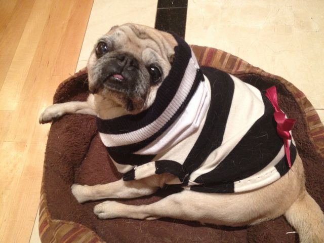 Those doggie outfits are the cutest! The stripes look especially fetching against Lulu’s dark fur. Great job Akemi!!!