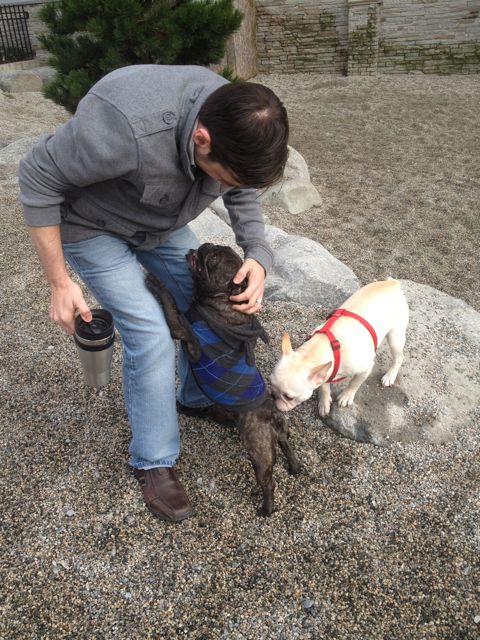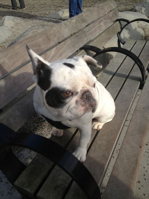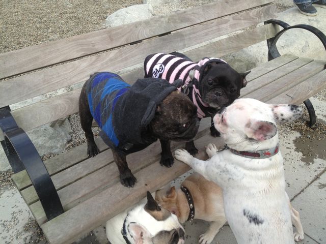 Well, maybe this will cheer me up. Pictures and video of Lulu (in the stylish blue sweater) at the last French Bulldog meet-up: